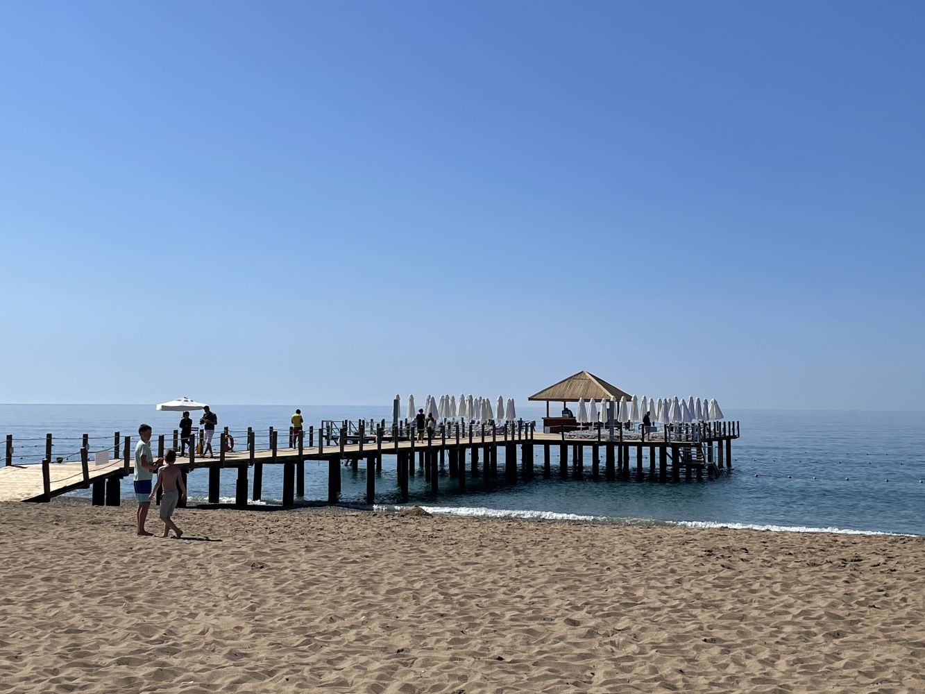 Die Bademöglichkeiten (Outdoor-Pools (einer geheizt) mit Rutschen, Hallenbad und Meer mit langem, gepflegtem Sandstrand) wie auch die verschiedenen Spielplätze luden zum Verweilen ein.